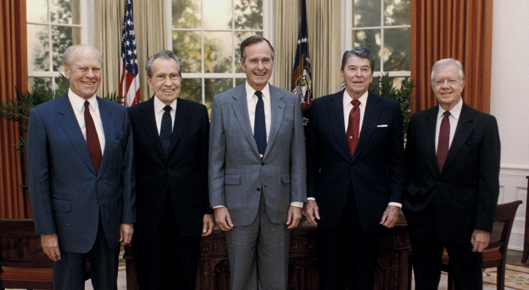 David Valdez took this photo of presidents Gerald Ford, Richard Nixon, George Bush, Ronald Reagan, and Jimmy Carter.